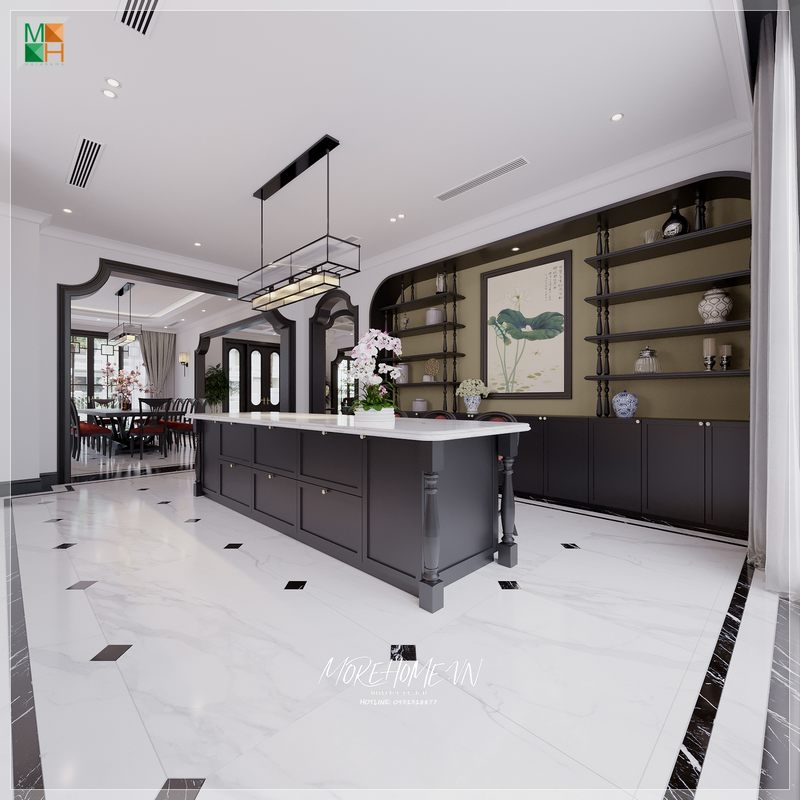 Thiết kế nội thất phòng ăn liền bếp hiện đại, tiện nghi cho nhà biệt thự