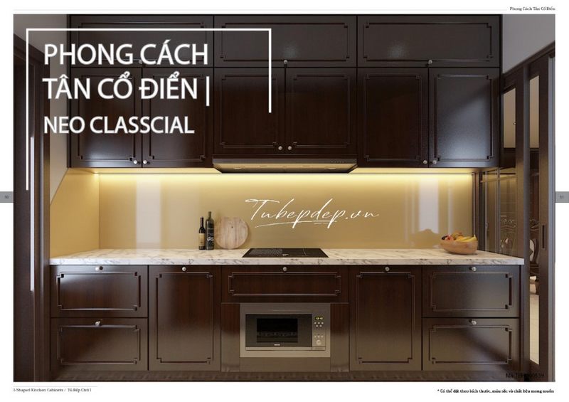 Giới thiệu mẫu tủ bếp gỗ tự nhiên sơn nâu đen bóng kiểu tân cổ điển dành cho các gia chủ yêu thích sự sang trọng và tiện lợi trong không gian ngôi nhà của mình
