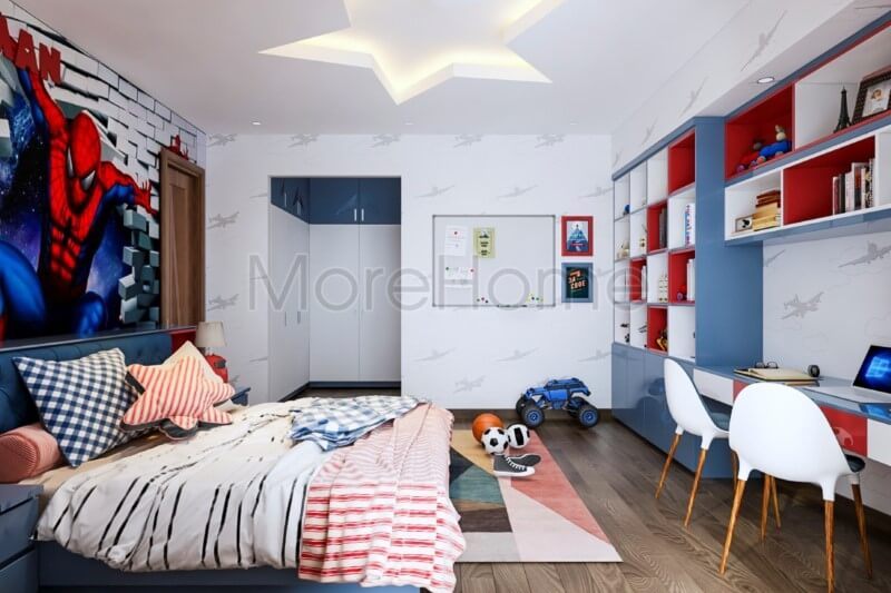 Tủ sách gỗ công nghiệp cho phòng ngủ bé trai trong chung cư tân cổ điển