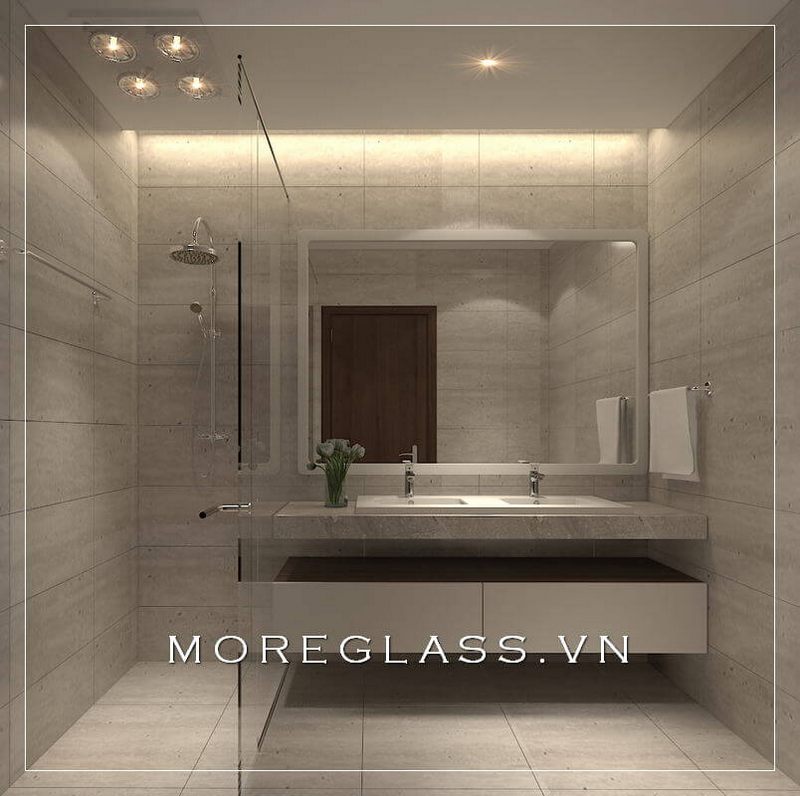 Mẫu thiết kế nhà tắm kính cao cấp với kính cường lực trong suốt giúp tạo nên vẻ đẹp tinh tế, sang trọng mà không làm cho phòng tắm nhỏ cảm giác bí bách.