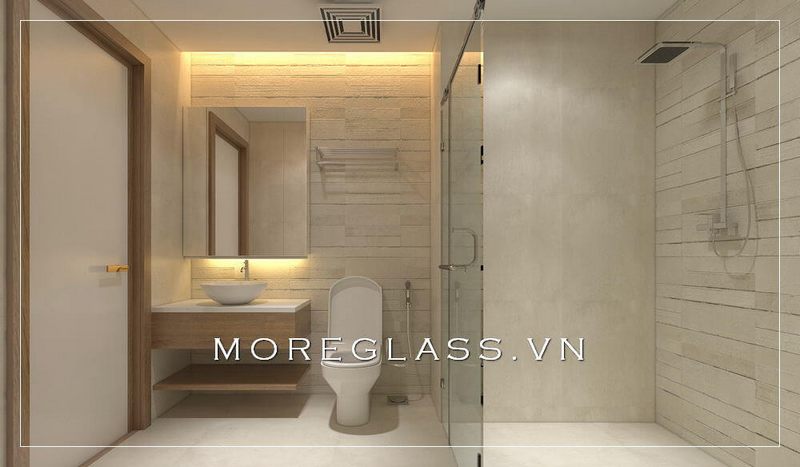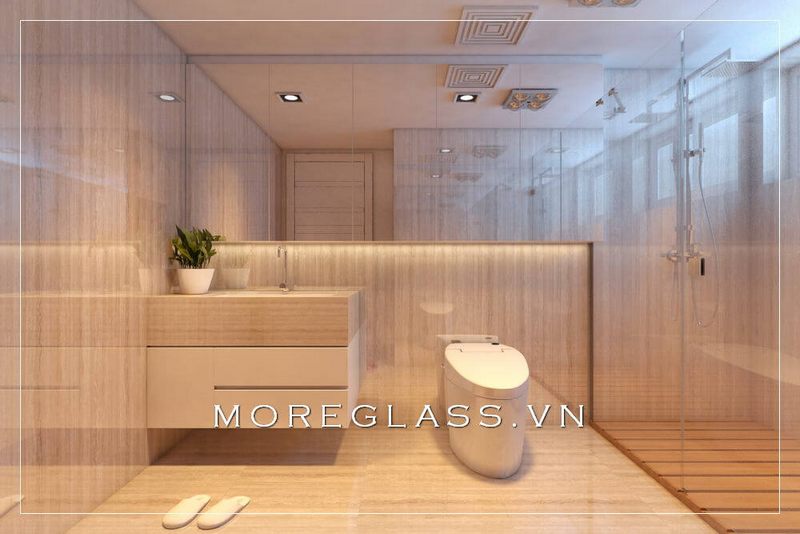 Mẫu thiết kế nhà tắm kính cao cấp với kính cường lực trong suốt giúp tạo nên vẻ đẹp tinh tế, sang trọng mà không làm cho phòng tắm nhỏ cảm giác bí bách.