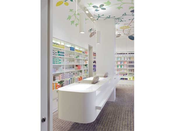 Quầy lễ tân được thiết kế với màu trắng tính năng uốn cong thoải mái, đáp ứng đầy đủ nhu cầu về tính thẩm mỹ và sử dụng.