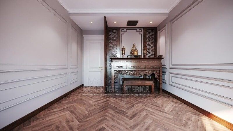 Biệt thự Louis City được thiết kế nội thất phòng thờ bằng gỗ tự nhiên đẹp và sang trọng.