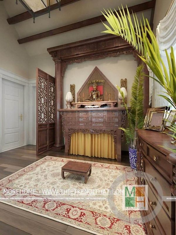 Nội thất phòng thờ gỗ để trang trí nhà biệt thự đẹp được thiết kế.